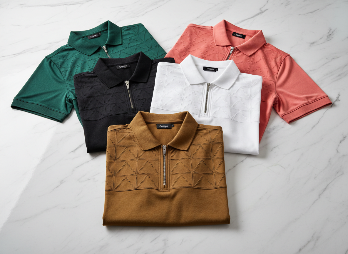 Upgrade your style with this premium Half-Zip Polo Combo featuring elegant geometric textured detailing. Designed with a sleek zipper closure and structured collar, these polos offer a modern, classy look with superior comfort. Crafted from soft, breathable fabric, they are perfect for casual outings, office wear, and smart-casual occasions. Stylish, versatile, and built to last. 🔥